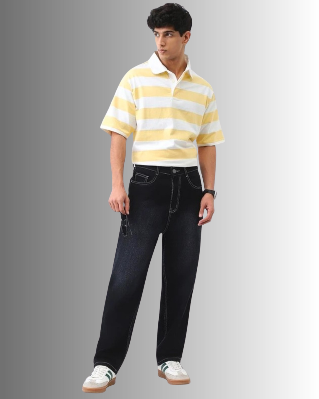 Introducing Black Denim Look Collection Men’s High Rise Wide Leg Straight Fit Denim Jeans – the perfect combination of comfort, durability, and style.